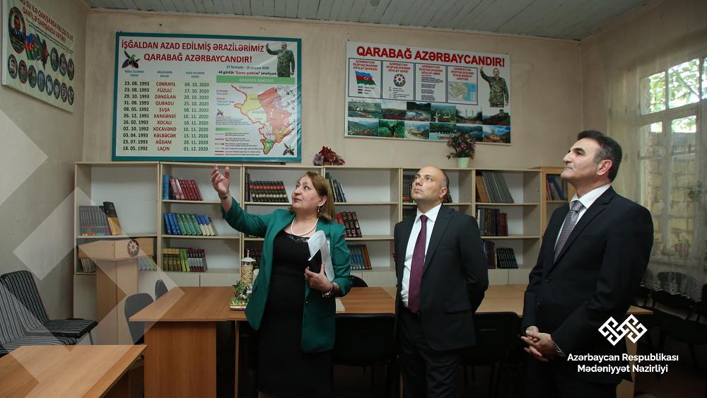 Ağcabədi rayon Mərkəzləşdirilmiş Kitabxana Sisteminin (MKS) Mərkəzi Kitabxanasına baxış keçirən nazir müəssisədə fəaliyyətin təşkili ilə maraqlanıb. Sonra həmin binada fəaliyyət göstərən Ağcabədi Dövlət Rəsm Qalereyası ilə tanışlıq olub.Ağcabədi şəhər Üzeyir Hacıbəyli adına Qarabağ Muğam Mərkəzinə gələn nazirə məlumat verilib ki, mərkəzin qış və yay konsert zalları mövcuddur. 50 şagirdin təhsil aldığı mədəniyyət ocağında 24 nəfər müəllim səs və tar ixtisasları tədris aparır. Səfər çərçivəsində mədəniyyət naziri Ağcabədi şəhərindəki yerli əhəmiyyətli memarlıq abidəsi olan məscidə, parkda yerləşən II Dünya müharibəsində həlak olmuş həmvətənlərimizin xatirə abidəsinə baş çəkib. Anar Kərimov həmin parkda dəfn edilmiş 44 günlük Vətən müharibəsi şəhidlərinin məzarlarını da ziyarət edib, üzərinə tər çiçəklər düzüb.